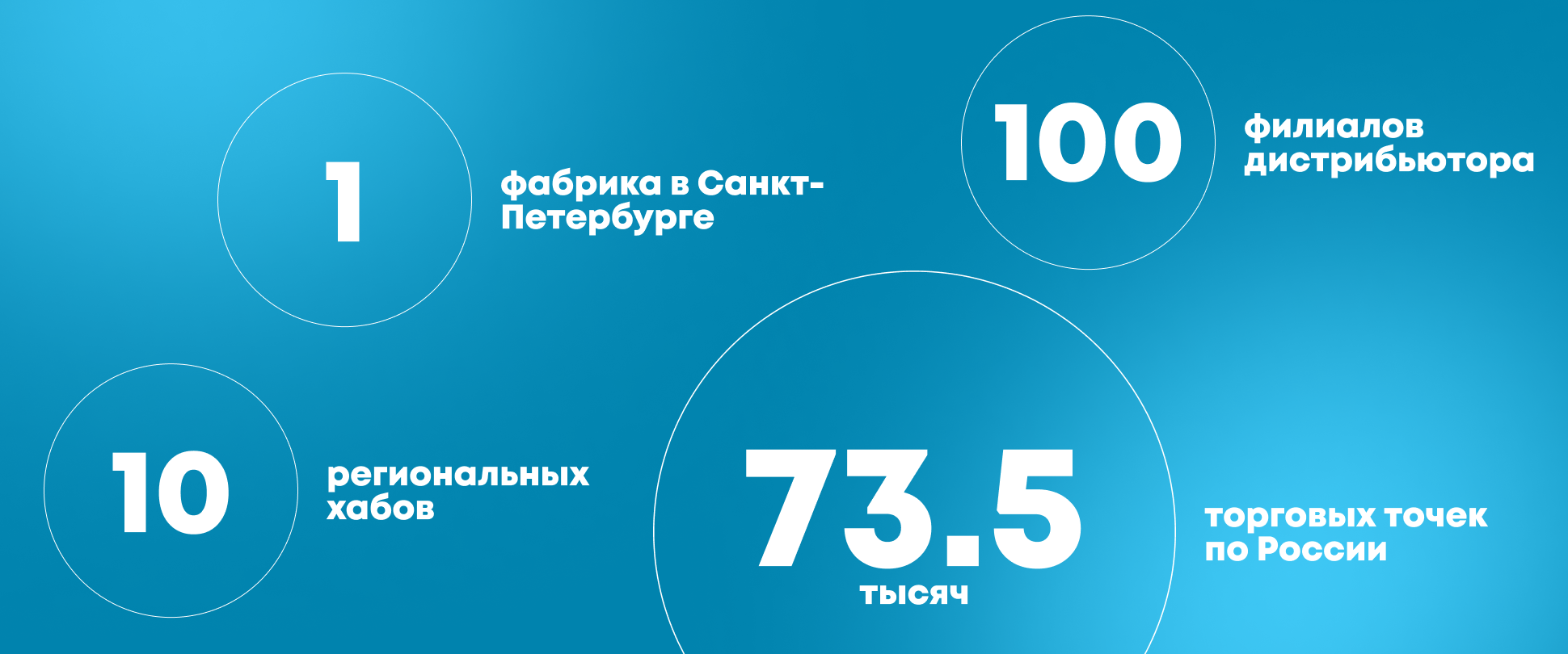 Путь стиков начинается на нашей фабрике в Санкт-Петербурге. Оттуда новинки отправляются в региональные хабы: сначала доезжают до ближних городов — Москва, Санкт-Петербург, Краснодар, затем появляются в Екатеринбурге, Новосибирске и Самаре. После отправляются в дальние хабы Иркутска и Владивостока. Из регионов новинки распределяются по филиалам дистрибьютора и дальше поступают в магазины по всей стране.